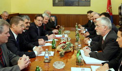 Београд, 27. јануар 2006. године - Потпредседник Владе Републике Србије Мирољуб Лабус разговарао је данас са потпредседником руске компаније Гаспром и генералним директором Гасекспорта Александром Ивановичем Медведевим о актуелној енергетској ситуацији и могућностима улагања руске стране у гасну инфраструктуру Србије.