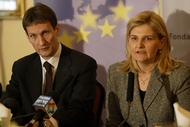 Слободан Вуксановић и директор Канцеларије за придруживање ЕУ Владе Републике Србије Тања Мишчевић на данашњем радном доручку са представницима медија |