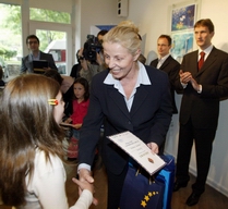 Београд, 15. мај 2006. године - Министар просвете и спорта у Влади Републике Србије Слободан Вуксановић отворио је данас изложбу "Европа у школи - дух заједништва у демократској Европи", која се одржава у галерији "Озон".