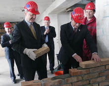Београд, 30. мај 2006. године - Министар здравља у Влади Републике Србије Томица Милосављевић и комесар за проширење Европске уније Оли Рен данас су полагањем прве цигле отворили радове у оквиру друге фазе реконструкције Института за мајку и дете "Др Вукан Чупић".