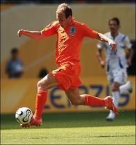 | Арјен Робен хита ка голу репрезентације СЦГ непосредно пре постизања јединог поготка на утакмици |