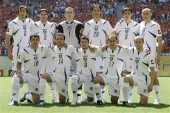 Фудбалери СЦГ позирају фоторепортерима пред почетак сусрета |