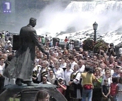 Београд/Нијагара, 10. јул 2006. године - На Нијагариним водопадима, где је подигнута прва централа на наизменичну струју по замисли Николе Тесле, јуче је свечано откривен споменик овом великом научнику, рад канадског вајара Леса Драјсдела, који је подигла заједница Срба у Канади.