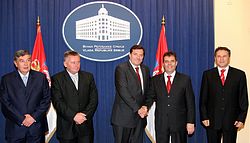 Слева: Небојша Радмановић, Велимир Илић, Милорад Додик, Војислав Коштуница и Милан Јелић |