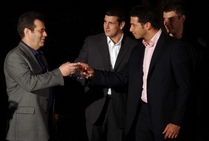 Војислав Коштуница у друштву ватерполиста - шампиона Европе |