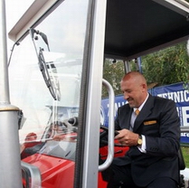 | Министар Бубало за воланом једног од трактора, испорученог купцу у Републици Српској |