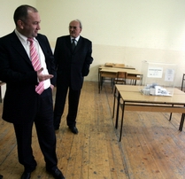 Ненад Поповић (лево) обилази једно од бирачких места на Космету |