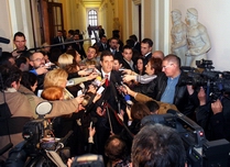 Војислав Коштуница даје изјаву за новинаре по завршетку свечане седнице Скупштине Србије |