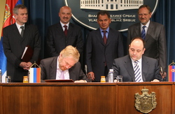 Представници влада Србије и Русије потписали су данас и Протокол између министарстава финансија и рударства и енергетике Републике Србије и Министарства финансија Руске Федерације о усаглашавању списка робе и услуга који се испоручују за рачун измиривања дуговања Руске Федерације према Републици Србији.