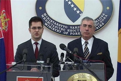 Сарајево, 28. мај 2007. године - Министри спољних послова Србије и Босне и Херцеговине Вук Јеремић и Свен Алкалај постигли су данас у Сарајеву сагласност о томе да је дошло време да билатерална сарадња Србије и БиХ доживи успон и да се унапреди изградња добросуседских односа.