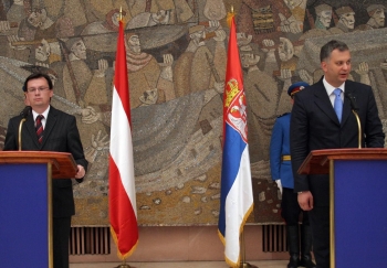 Он је истакао да Аустрија подржава настојања Србије да се прикључи ЕУ и оценио да ће се трајни мир постићи ако се земље удружују у оквиру Уније или у оквиру неке друге организације.