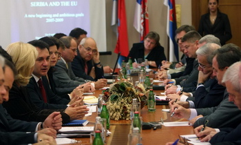 Београд, 9. октобар 2007. године – Потпредседник Владе Републике Србије Божидар Ђелић одржао је данас редовни састанак са свим амбасадорима земаља чланица Европске уније и упознао их са приоритетима европске агенде Србије.