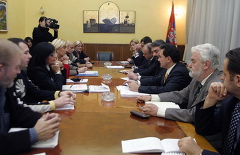 Преговарачки тим Владе Србије чинили су потпредседник Владе Божидар Ђелић, министар правде Душан Петровић, министар финансија Мирко Цветковић, министар за државну управу и локалну самоуправу Милан Марковић и министар за рад и социјална питања Расим Љајић.