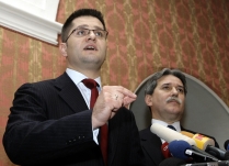 Вук Јеремић и Слободан Самарџић обраћају се новинарима |