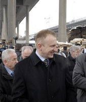 | Драган Ђилас приликом обиласка Панчевачког моста у Београду |