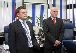 Београд, 24. децембар 2007. године - Помоћник министра правде у Влади Републике Србије Слободан Хомен уручио је данас председницима Првог и Другог општинског суда у Београду рачунарску опрему из донације Европске комисије.