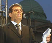 Војислав Коштуница говори на великом народном протесту "Косово је Србија" испред Дома Народне скупштине у Београду |