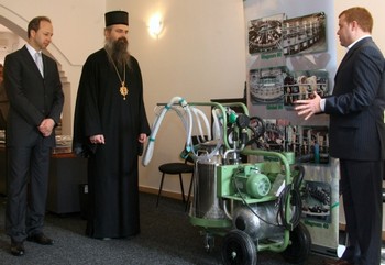 Београд, 4. април 2008. године – Министар пољопривреде, шумарства и водопривреде у Влади Републике Србије Слободан Милосављевић присуствовао је данас уручивању опреме за машинску мужу оваца и коза економији манастира Високи Дечани.