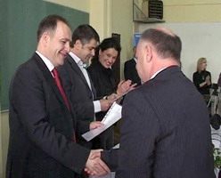 Лесковац, 19. април 2008. године - Министар просвете у Влади Републике Србије Зоран Лончар уручио је данас у Лесковцу директорима школа на југу Србије решења о додели средстава из Националног инвестиционог плана (НИП), у износу од око 32 милиона динара.