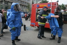 Београд, 17. мај 2008. године – У организацији Сектора за заштиту и спасавање Министарства унутрашњих послова Владе Републике Србије данас је одржана показна вежба на Тргу Републике на којој су представљена нова возила за гашење пожара и хидраулична платформа висока 54 метра.