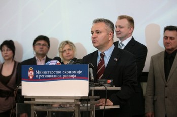 Београд, 26. мај 2008. године – Министар економије и регионалног развоја Млађан Динкић и министар задужен за НИП Драган Ђилас потписали су данас уговоре о додели бесповратних средстава за подстицај директних инвестиција са представницима 12 домаћих и страних компанија.