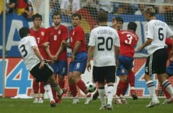 | Михаел Балак из слободног ударца постиже победоносни гол за Немачку |