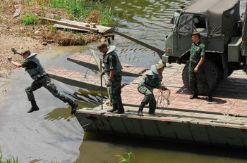 Припадници Војске Србије приказали су вештину савлађивања водених препрека у оклопним возилима, амфибијским транспортерима, скелом од 40 тона, као и способност у коришћењу приручних средстава и опреме за подводну вожњу и пловидбу.