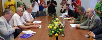 Београд, 11. август 2008. године – Потпредседник Владе Републике Србије Јован Кркобабић разговарао је данас са представницима удружења избеглица из Хрватске о актуелним проблемима повратка и интеграције избеглица.