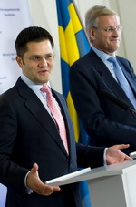 Он је подсетио на то да је један од главних приоритета Владе Србије да земљи обезбеди статус кандидата за пријем у ЕУ, по могућству пре него што Шведска у јулу 2009. године преузме председавање Унији.