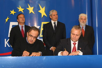 Уговор су у Палати Владе Србије потписали потпредседник Владе Србије и министар економије и регионалног развоја Млађан Динкић и председник "Фијат групе" Серђо Маркијоне.