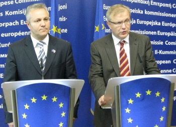 Београд, 16. октобар 2008. године – Потпредседник Владе Републике Србије и министар економије и регионалног развоја Млађан Динкић разговарао је данас у Бриселу са комесаром за проширење Европске уније Олијем Реном о убрзању европског пута Србије и примени Прелазног трговинског споразума са ЕУ.
