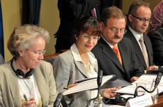 Меморандум је у име Данске потписала амбасадор Мете Кјуел Нилсен, Словеније амбасадор Мирослав Луци, Шпаније Ињиго де Палацио де Еспања, Швајцарске отправник послова Амбасаде те земље Стефан Клоцл, а у име Валике Британије виши саветник за управљање у Одељењу за међународни развој Сатијендра Прасад.