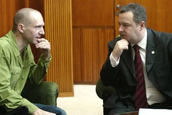 Београд, 8. новембар 2008. године – Први потпредседник-заменик председника Владе Србије и министар унутрашњих послова Ивица Дачић разговарао је данас са познатим холивудским глумцем и редитељем Ралфом Фајнсом о снимању његовог новог филма у Београду.